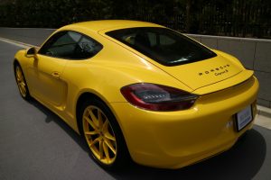 目立ち度満点のポルシェケイマンSのレーシングイエロー!!